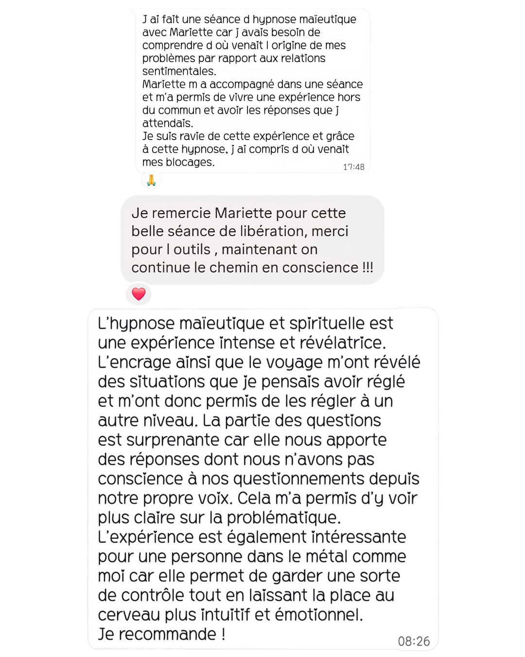 Chaque séance est différente, mais ce que je peux te garantir, c’est que ta conscience sait faire. Et moi, je suis là pour t’accompagner tout au long du chemin.