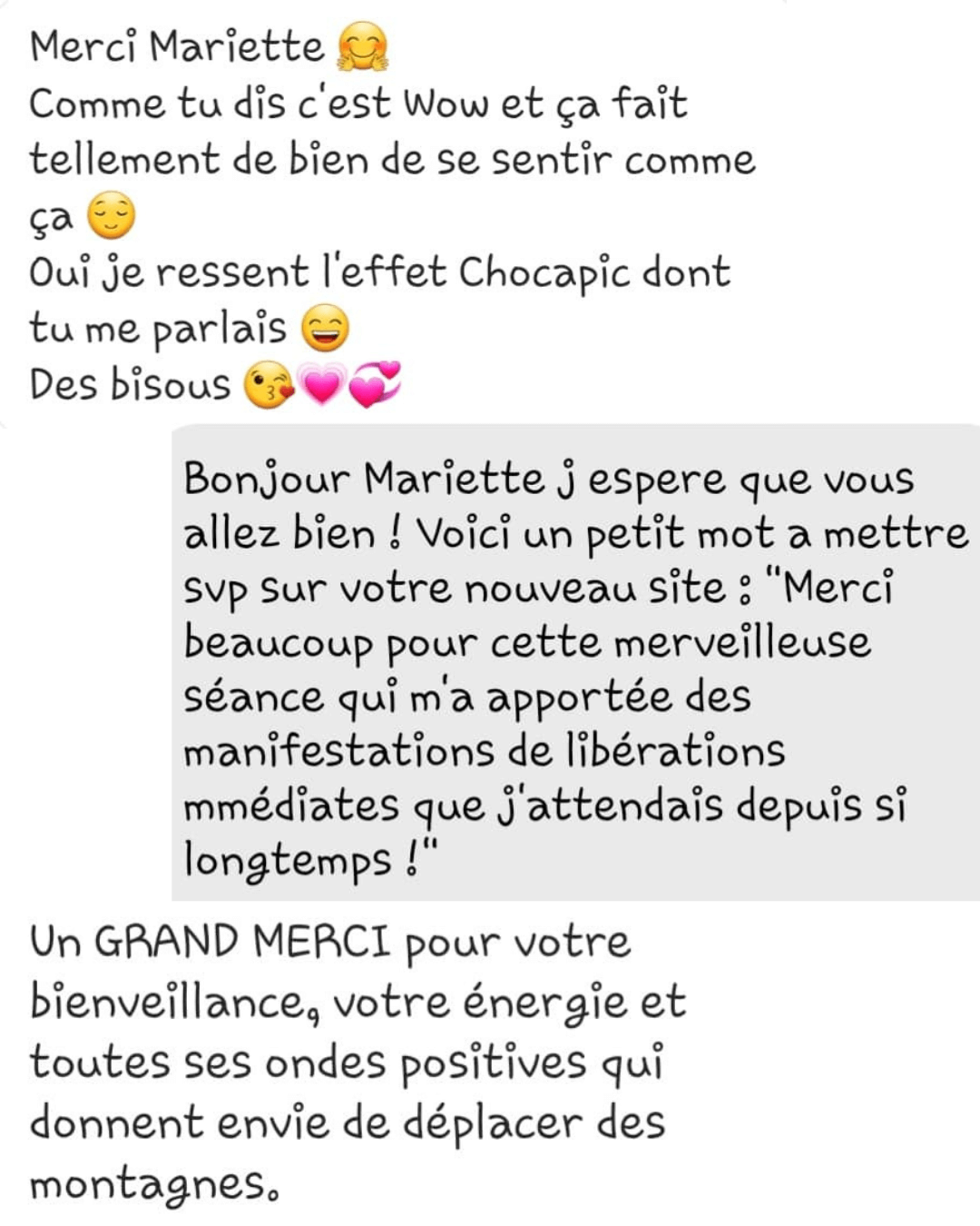Pendant qu’on parle, je travaille sur ton énergie : je libère les tensions, les émotions cristallisées. Certaines personnes sentent du chaud, du froid, des picotements… d’autres ne ressentent rien. Peu importe… le travail se fait.